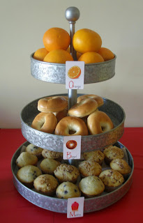 Oranges,bagels and muffins on my Pottery Barn stand which I LOVE!
